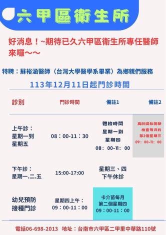六甲區衛生所戒菸服務,為每周一至週五門診時間,請多加利用。免費戒菸專線0800-63-63-63。