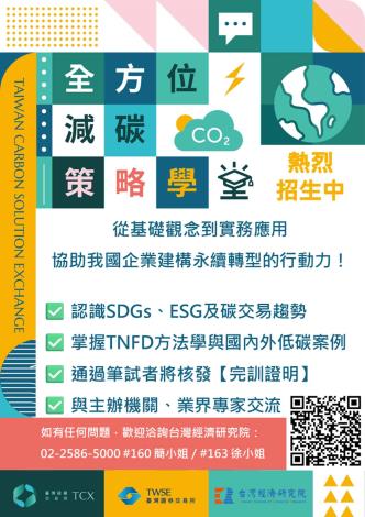 旨揭課程由臺灣證券交易所及臺灣碳權交易所全額支持,限額免費參加, 課程報名連結: