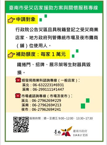 臺南市因丹娜絲颱風及7/28豪雨受災店家援助方案