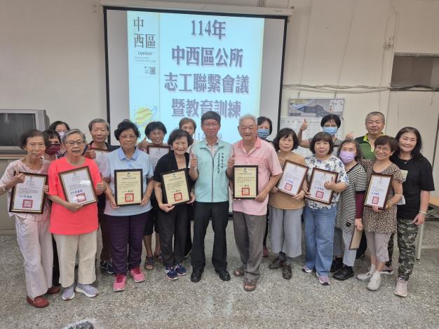 中西區公所舉辦114年度民政志工聯繫會議暨聯誼活動,表揚公所為民服務好幫手。