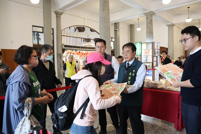 黃偉哲表示,西市場為台南重要的歷史市場之一,結合傳統風味與創新元素,是市民與遊客喜愛的採買據點。此次發送的卡比胖拉小提燈結合台南芒果、柚子、桔子,今日特別安排於下午時段發送,盼讓來台南的旅客也能共享節慶喜悅。