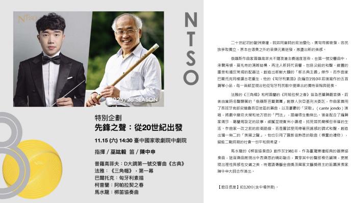 2、NTSO先鋒之聲─從20世紀出發:114年11月15日(六)14:30臺中國家歌劇院中劇院。