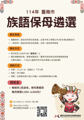臺南市政府誠摯邀請您加入「族語保母」行列,一起打造孩子的母語環境🌱👶