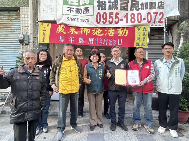 台南市慈光愛心會、社團法人臺灣省會計師公會、立法委員陳亭妃市議員陳怡珍聯合服務處、財團法人陳佳照紀念文化基金會、好帝一食品有限公、台南市府城同心協會、台南市登陸慈善愛心會、培珍社會福利慈善事業基金會等單位,關懷鄰里弱勢族群善行義舉115.2.8