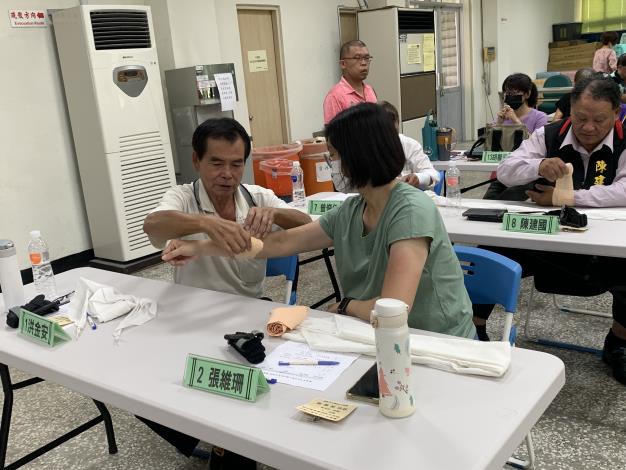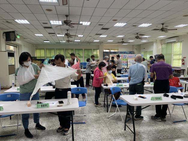 兩天緊鑼密鼓的課程讓學員收穫滿滿,大家彼此分享避難收容處所的空間規劃與運作模擬,考量不同族群的避難需求,而在急救實務課程中,共同精進止血帶、三角巾與彈性繃帶的正確使用方式。