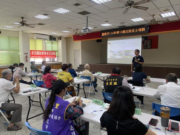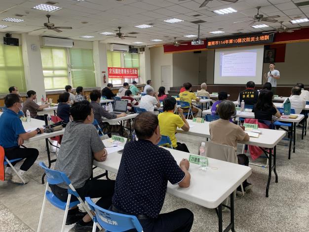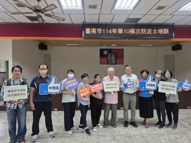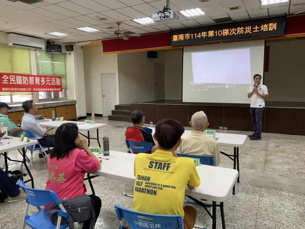 由臺南市中西區公所主辦的114年第10梯次防災士培訓課程10/27、10/28圓滿落幕,包括區長蔡佳甫與轄內多位里長、里幹事及社區志工等基層防災力量齊聚一堂,課程特別邀請到臺南市防災士協會侯俊彥理事長、臺南市政府消防局吳獻宗科長與黃聖峰、楊家宗、蘇兆民等多位教官,共同帶來專業授課。透過教官們以親身經驗的真實案例,引領學員們認識「防災士」作為危急時刻支撐社區的關鍵力量,唯有平時整備與社區互助,才能減少損害、加速復原。