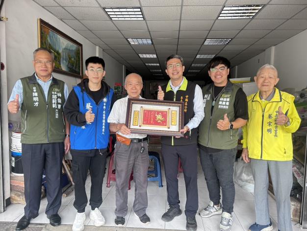 中西區蔡佳甫區長代表黃偉哲市長、民政局姜淋煌局長與多位民意代表,於10月29日親自到宅表達祝賀之意。