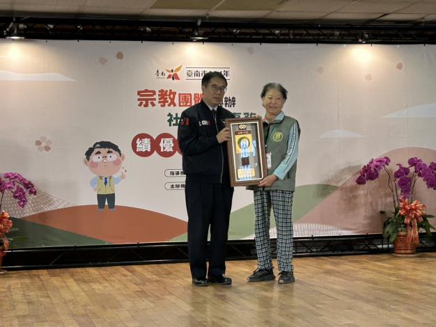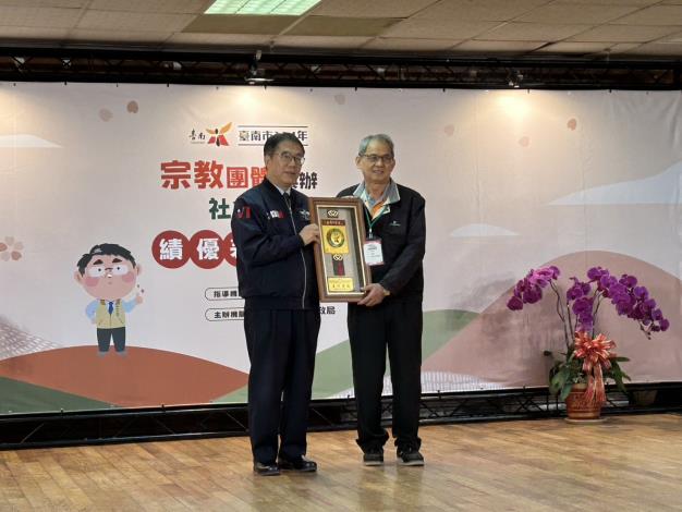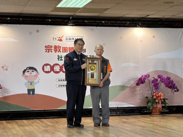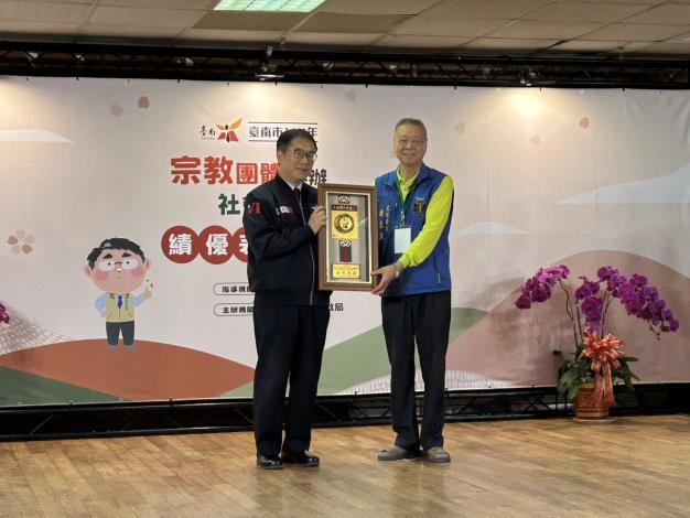 臺南市114年宗教團體興辦社會公益事務績優表揚大會,中西區公所獲績優公所獎、區內計有8間團體獲獎