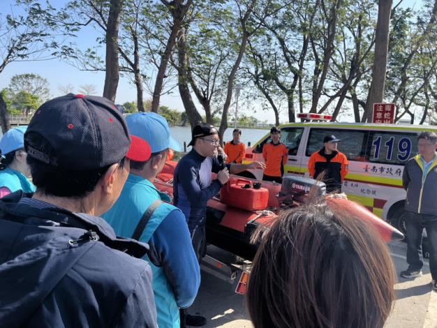 為加強汛期防災整備工作並強化區公所及各里管(膠)筏操作能力,消防局第一救災救護大隊於3月12日上午攜手新營、柳營、鹽水及後壁等4區公所,在新營區天鵝湖公園聯合辦理「管(膠)筏操作訓練」。本次訓練共有超過60名人員參與,透過船艇操作及水上救生裝備實作訓練,提前為迎戰颱風與梅雨季節做好準備,強化第一線防災應變能力。