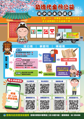 三、環保拜神明:以「以功代金」做公益得到功德的方式,又可以減少紙錢的焚燒,把對空氣品質的影響可以降到最低。