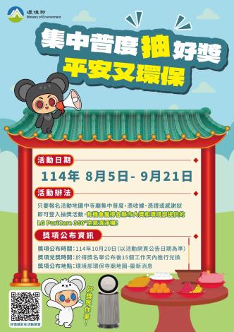 中元集中普度抽獎,活動期間為8/5至9/21日。