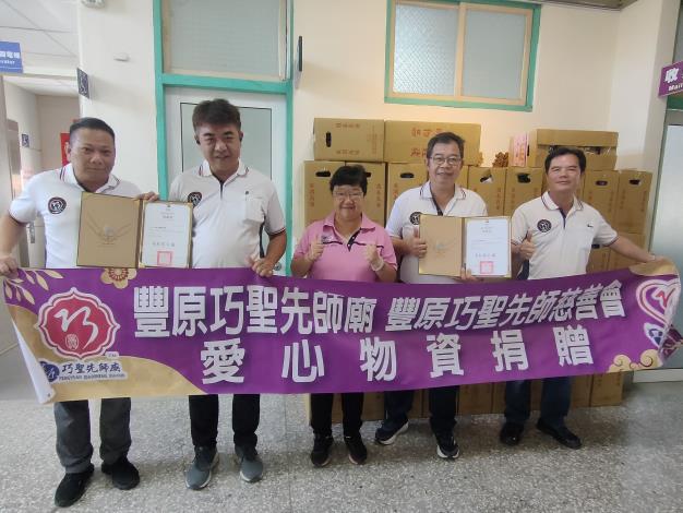 四大宮廟──豐原慈濟宮、豐原鎮清宮、豐原巧聖先師廟、神岡卓蘭溝福德廟於114年9月8日共同捐贈物資,提供一批物資給鹽水區弱勢家庭。四大宮廟秉持「關懷弱勢、回饋社會」的理念,透過實際行動將善心化為溫暖,希望拋磚引玉,帶動更多社會力量一同關懷弱勢群體。