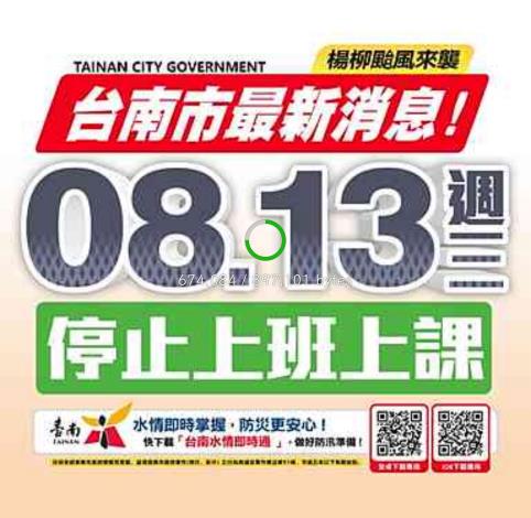 根據中央氣象署最新資訊,楊柳颱風已發佈陸上強風特報,颱風及其外圍環流,明(13)日晨至13日晚上,台南市有平均風9級以上或陣風11級以上發生的機率,考量風力有危及市民上班上課安全或有致災之虞,為維護民眾安全及各項整備應變作為,明(8/13)日停止上班、停止上課。
